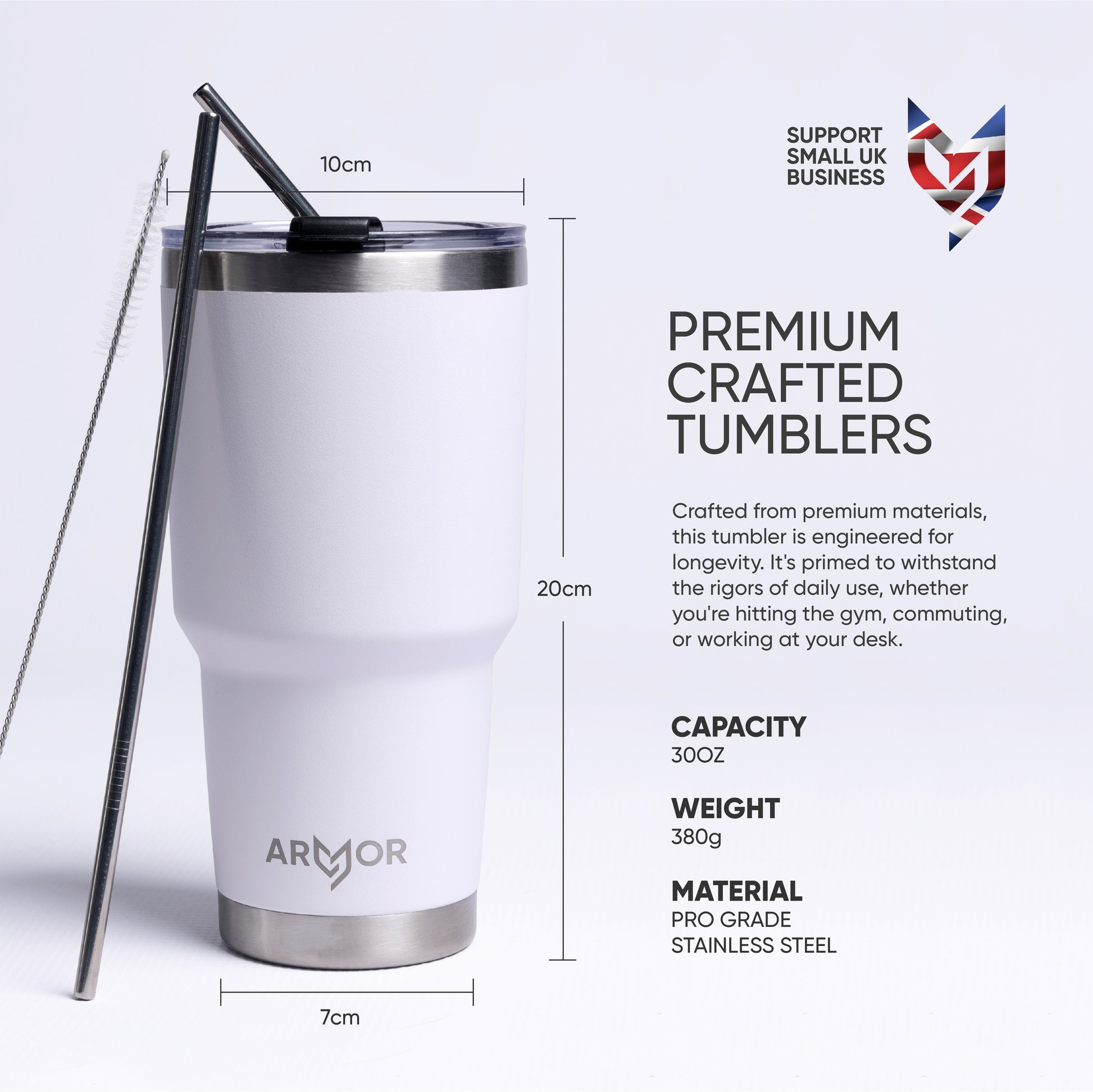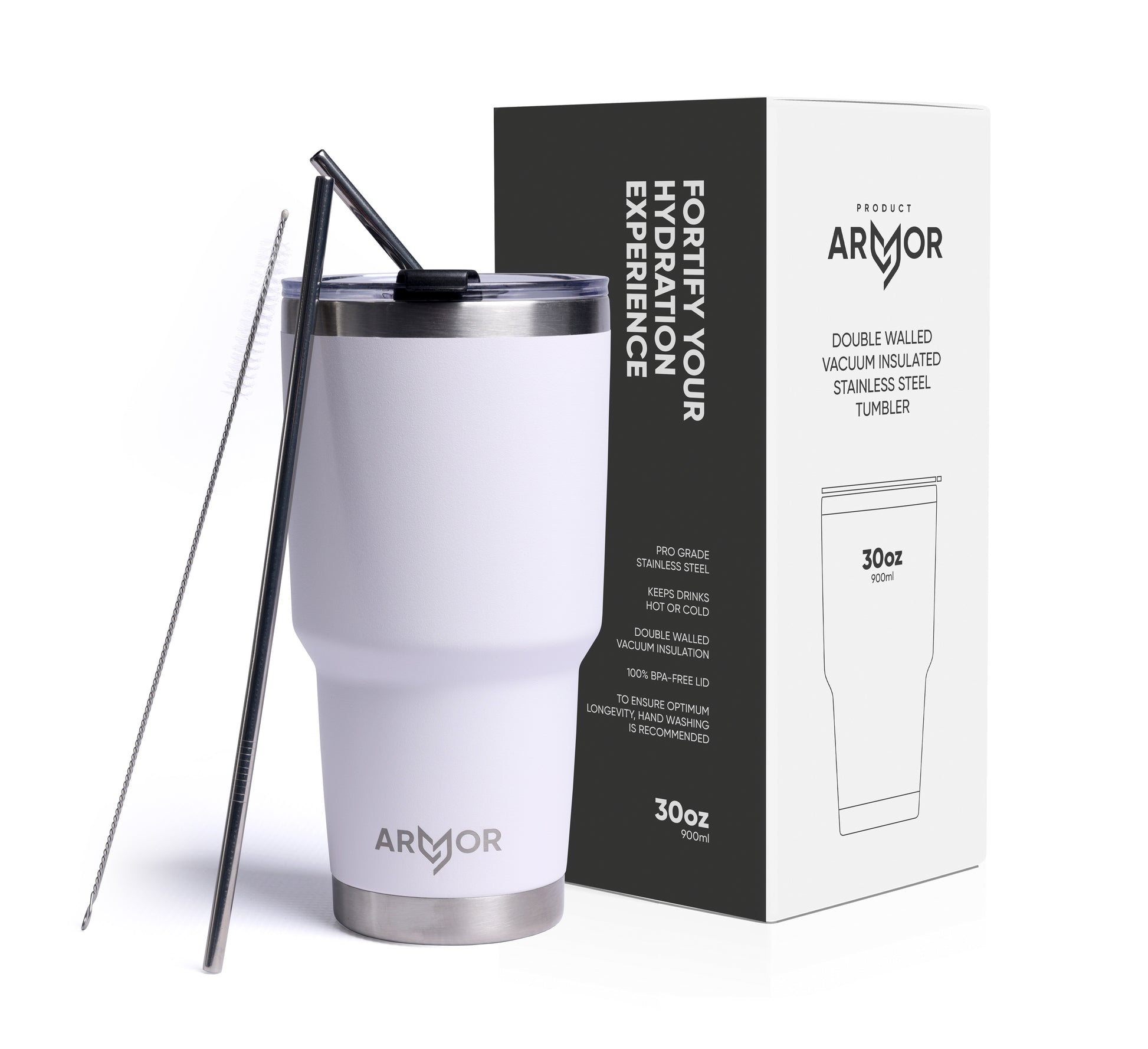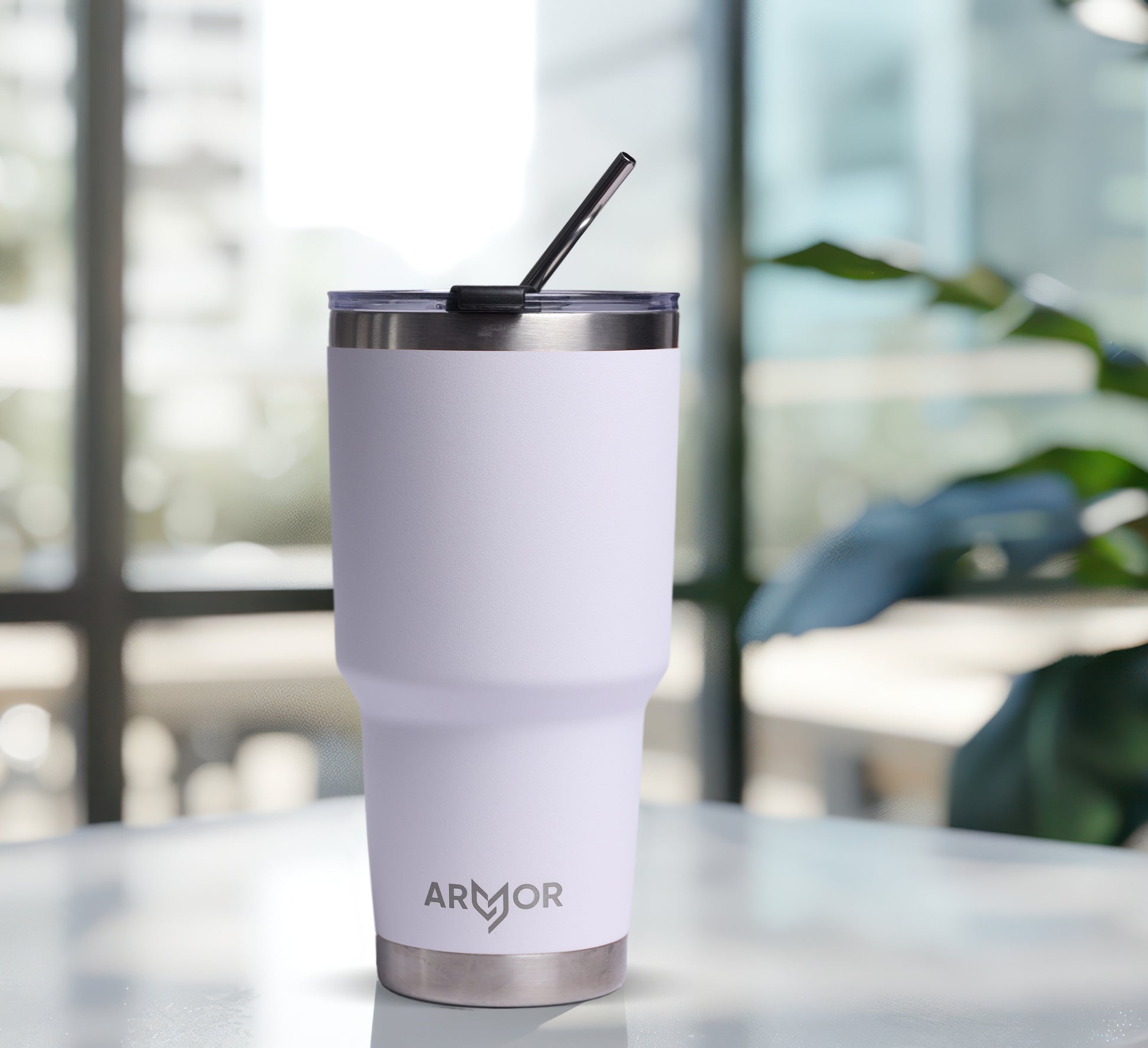 Perfect for coffee lovers, travelers, commuters, and outdoor enthusiasts. This sleek, ergonomic tumbler has a wide mouth for easy sipping and can be used with or without the provided stainless steel straw.
