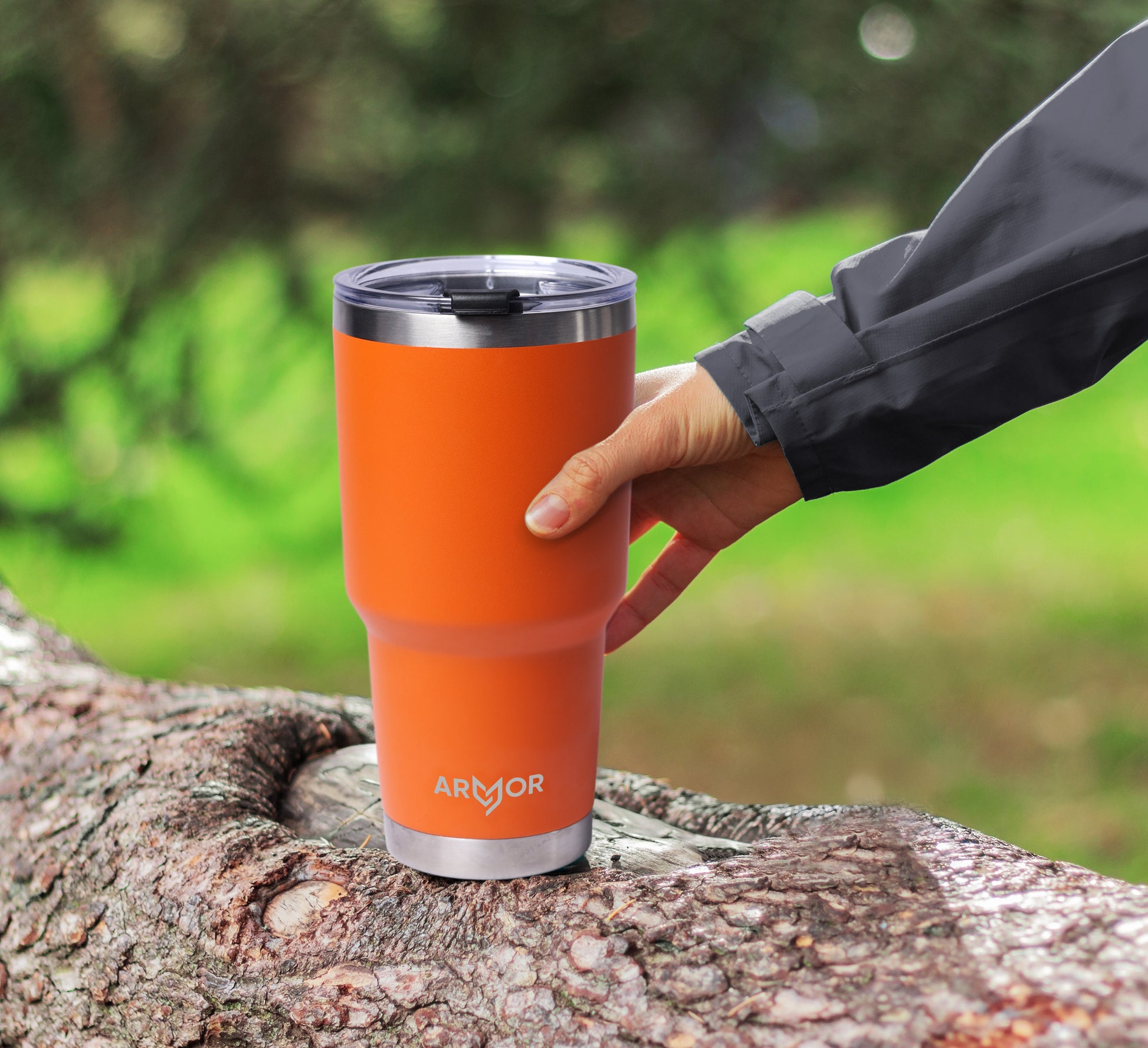 Perfect for coffee lovers, travelers, commuters, and outdoor enthusiasts. This sleek, ergonomic tumbler has a wide mouth for easy sipping and can be used with or without the provided stainless steel straw.